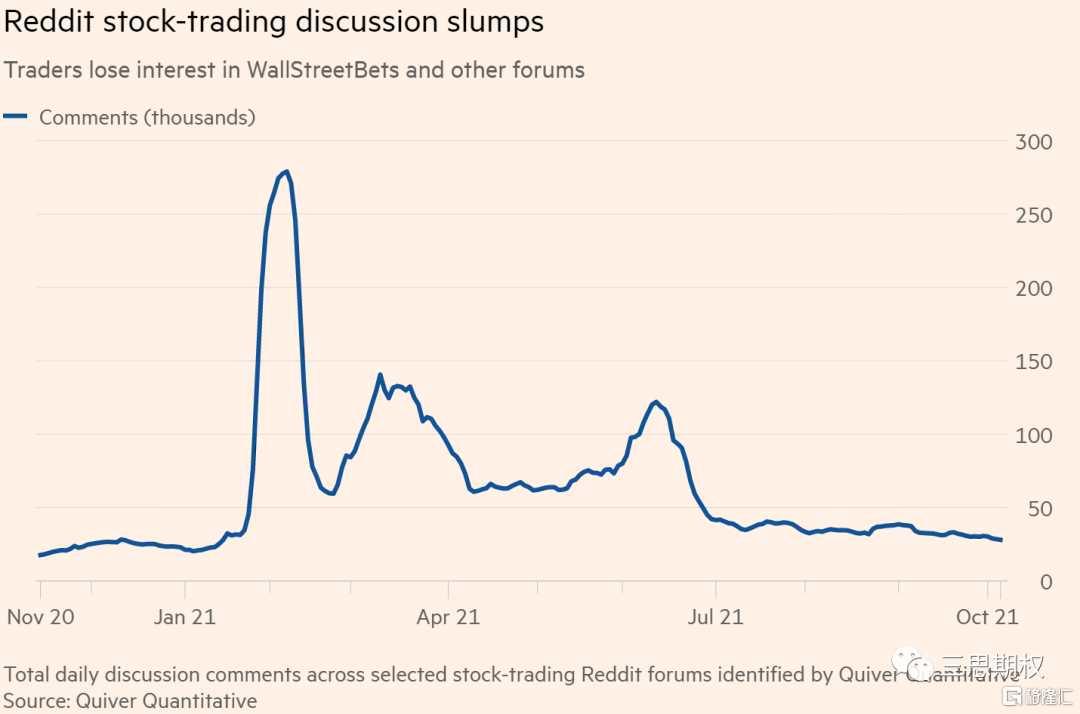 自此之後,雖然WSB這個散戶組織慢慢的淡出人們議論,而且Reddit論壇裏談論股票交易的帖子越來越少,但是散戶交易期權的熱度不但沒有退燒,反而肉眼可見的越來越高,甚至不少股票期權的交易量已經超過了股票本身。