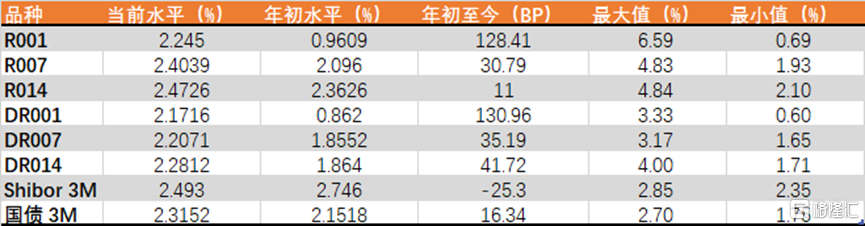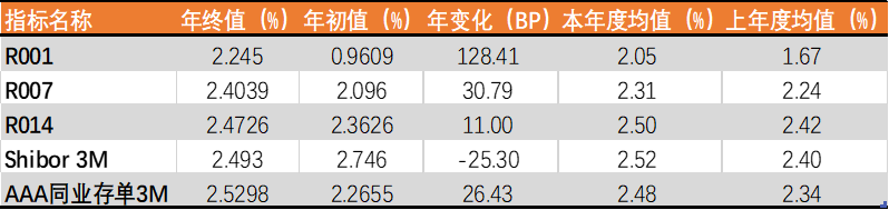 今年央行對流動性進行了靈活精準的調控,除年初春節前資金利率的短暫上升外,全年總體處於平穩水平,下半年的降準與通脹的上行並未對資金面造成持續的方向性衝擊。針對週期性的資金需求(主要包括月末季末、節假日、稅期的資金需求),以及非資金市場因素引發的流動性需求(例如房地產行業監管變化與信用事件),央行均進行了臨時性或前置的投放,銀行間質押式回購利率(以DR007爲代表)圍繞2.20%的政策利率中樞上下波動。