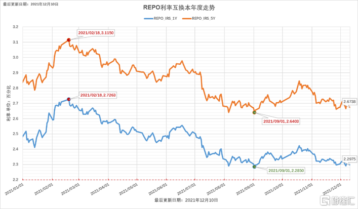 8月中-10月中,地方債發行加速,在能耗雙控及限電政策影響下,商品價格明顯上行導致PPI上行幅度超出預期,加上前期降準預期落空等因素,IRS利率震盪上行。