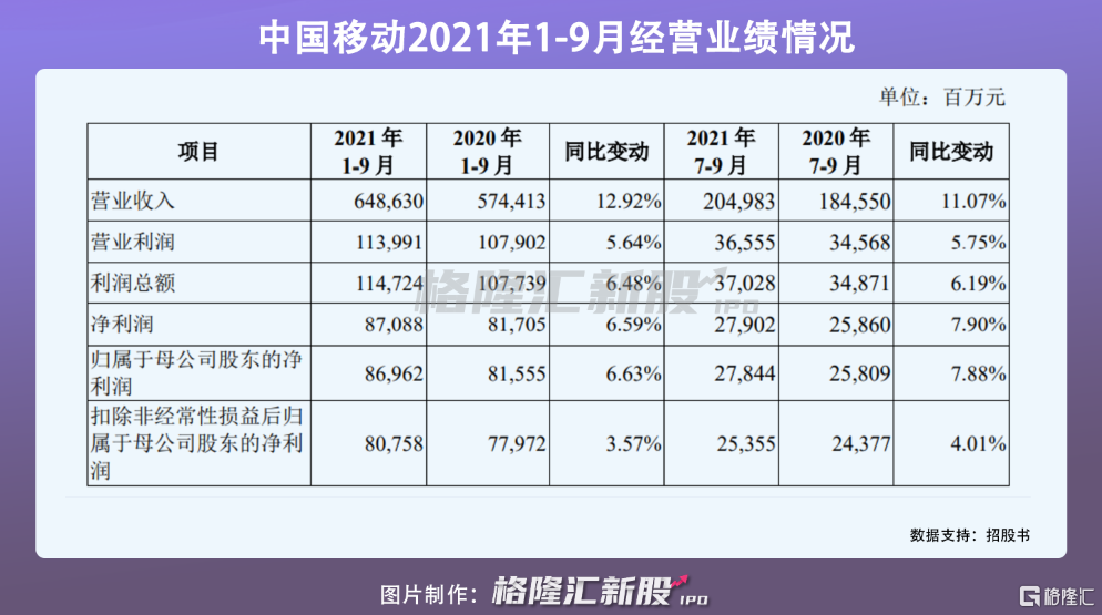 此外,中國移動發佈了2021年業績預增預告,對今日股價走勢提供了一定的支撐作用。根據招股書,中國移動預計2021年實現營收約8449億元至8526億元,同比增長10%至11%;歸母淨利潤約爲1143.07億元至1164.64億元,同比增長6%至8%。