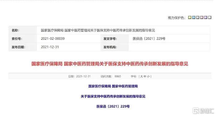 12月30日,國家醫療保障局、國家中醫藥管理局發佈《關於醫保支持中醫藥傳承創新發展的指導意見》,進一步表明了國家對中醫藥高度認可的態度,強化了對中醫藥行業的發展的支持。