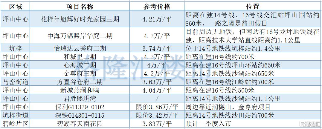 今年坪山預計將會迎來12個項目(不完全統計),雖然比不上去年的數量,但其中也有不少新盤,值得關注。