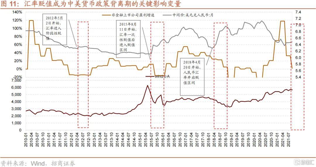 2、中美貨幣政策背離階段股市分水嶺——匯率&業績