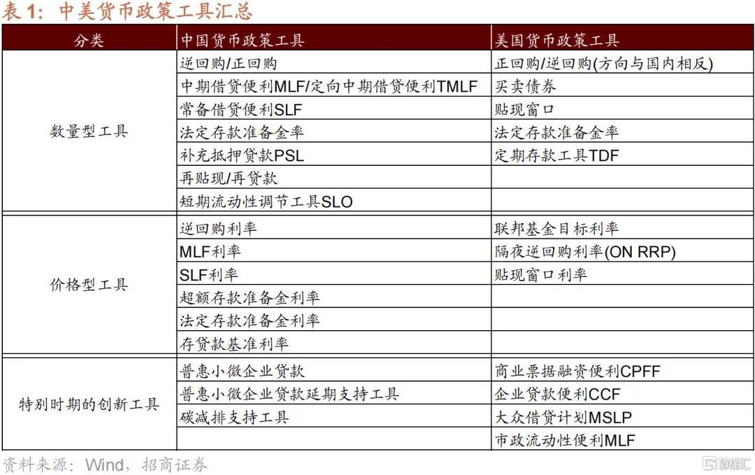 總結來説,中美貨幣政策工具如下表所示。