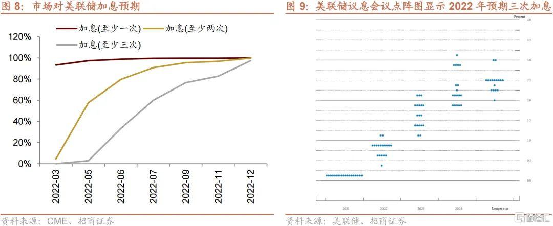 目前市場普遍預計美聯儲從3月開始加息,全年加息三次以上。