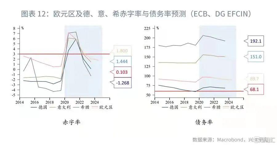 危機來臨後,一方面,信用溢價飆升導致償債成本大幅提高。另一方面,考慮到銀行間的高度關聯性及其在穩定經濟方面的重要地位,政府不得不通過提供支持性資本重組貸款來救助受影響最嚴重的銀行。內外衝擊之下,希臘和意大利的債務水平進一步上揚。