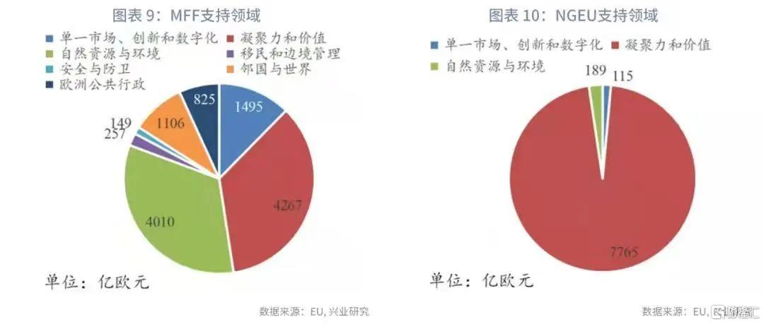 政策應對方面,後疫情時代歐元區各國基本面與歐債危機時期出現明顯分化的另一大重要因素在於歐洲層面政府態度的區別。不管是歐盟還是歐央行,在應對本輪新冠疫情危機時都採取了擴張性的政策。上文提到的《公約》免責條款是其一。另外,歐盟財政政策也達到了前所未有的統一。歐盟於2020年推出了史上規模最大的一籃子財政刺激計劃——2021-2027多年度財政框架(MFF)以及下一代歐盟計劃(NGEU),爲各成員國的經濟復甦提供了有針對性的資金支持,也使其朝着財政一體化的目標不斷前進。歐央行在恢復資產購買計劃(APP)的同時,推出了靈活度更高的PEPP。除此之外,疫情緊急長期再融資操作(PELTRO)、歐元體系中央銀行回購工具(EUREP)等其他疫情階段的臨時性貨幣政策工具也被啓用,進一步加碼寬鬆貨幣環境。財政貨幣的雙重刺激,歐元區經濟復甦不斷加快,融資條件與通脹前景已顯著改善。