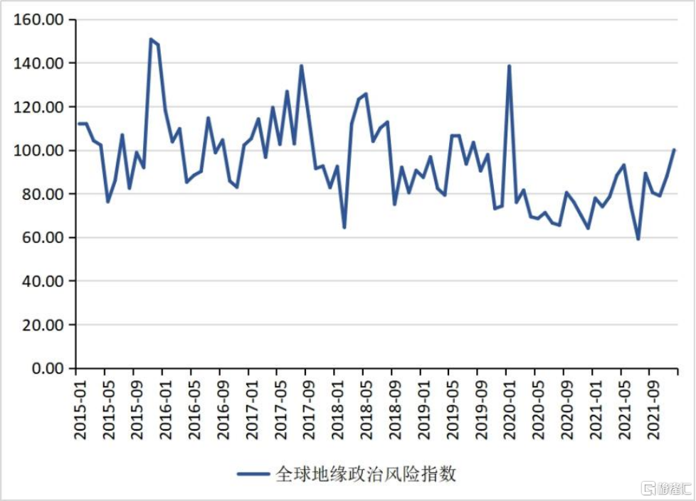 不確定性之二,全球地緣政治風險上升。2021年,新冠疫情危機持續的背景下,全球地緣政治風險在加劇。從地緣政治風險指數來看,2021年7月至12月,全球地緣政治風險指數從59.16快速上升至99.99(見圖11)。2021年,中美摩擦、哈薩克斯坦內亂、美軍撤離阿富汗等都增加了全球地緣政治風險。2022年需要特別關注俄烏衝突和中美摩擦的演變。就俄烏衝突而言,若俄烏衝突在2022年升級,不僅會破壞地區安全局勢,還將波及全球能源供給和能源轉型,並對中東歐、中亞國家外交政策帶來連鎖反應(中國社會科學院世界經濟與政治研究所,2022)。就中美摩擦而言,拜登政府在2021年延續了特朗普政府的對華政策,把中國視作美國最大的挑戰者和競爭者,逐步採取擴大對華高科技制裁等措施壓制中國(高劍波等,2022)。美國對外關係委員會副主席香農·奧尼爾(Shannon K. O'Neil)指出,地緣政治和政府行動主義是影響下一階段全球化的主要因素,而不是貿易、投資或病毒傳播,中美政治緊張局勢的惡化還將持續。