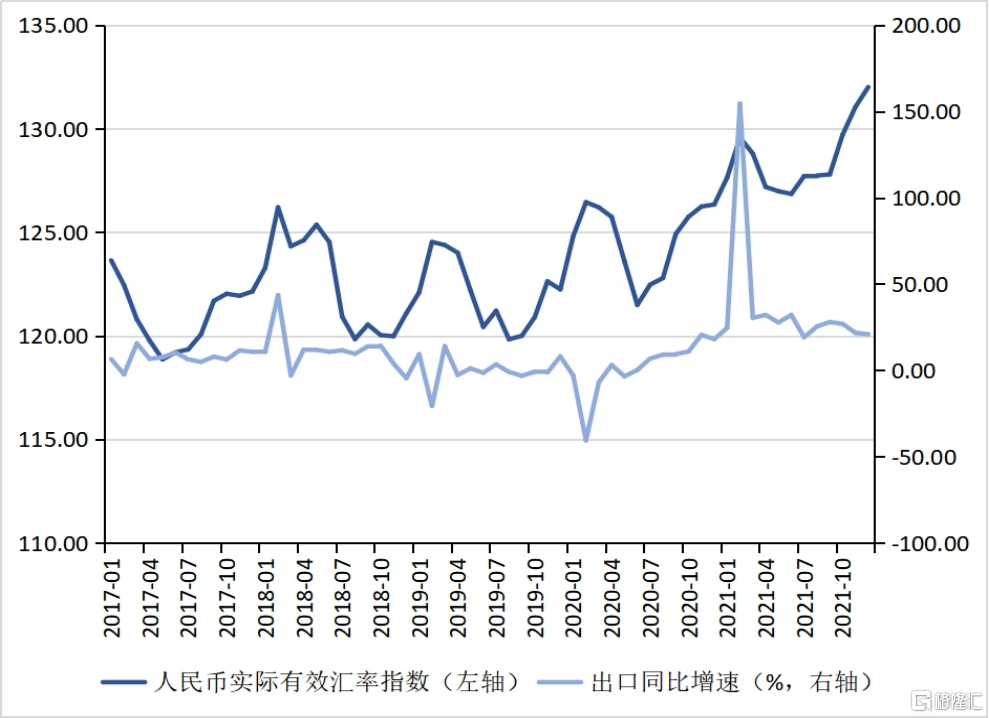 圖4 人民幣實際有效匯率指數與中國出口同比增速