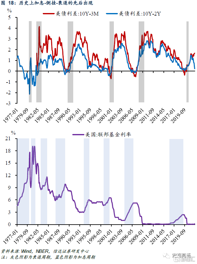 1978年以來的六次經濟衰退中,有三次影響了美聯儲的加息節奏。