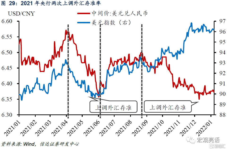 4月25日晚間,央行下調外匯存款準備金率1個百分點,釋放了明確的穩匯率信號。市場記憶猶新的是,在2021年人民幣匯率面臨較強升值壓力的背景下,2021年5月和12月央行曾兩次上調這一工具抑制升值。其中,5月份首次上調之後,起到了明顯效果,人民幣匯率階段性拐點出現,2021年6-7月轉爲貶值。時移事易,距離上次調整四個多月之後,這次央行選擇下調該工具抑制貶值。從機制上看,下調外匯存準率,能夠釋放一部分外匯流動性,增加外匯市場上的美元供給,從而緩解人民幣貶值壓力。