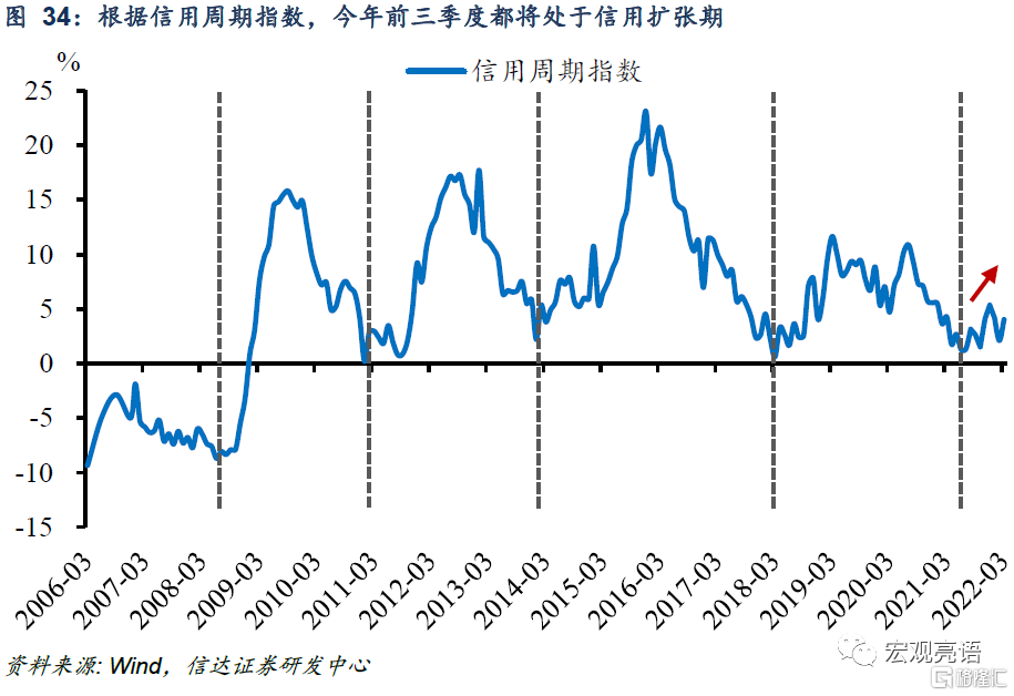 基於我們構建的信用週期指數,本輪寬信用正處於開始階段,後續空間廣闊。我國過去的幾輪信用週期:200806-201101、201101-201401、201401-201803、201803-202106,一輪完整的週期大約持續三年左右。本輪寬信用週期以2021年7月央行降準爲開端,8月央行信貸座談會釋放明確政策信號,強調“保持信貸平穩增長”,2021年10月起數據出現明顯改善。據此判斷,今年至少前三季度都將處於信用擴張週期。