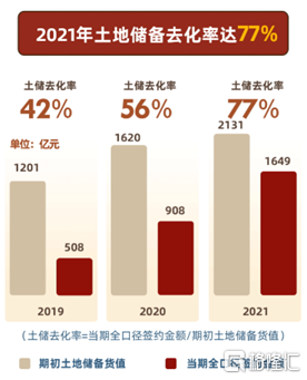 從資產結構看,建發國際較少持有型資產或四線以下的郊區大盤,土地資產的流動性較強。截至2021年末,建發國際擁有總土地儲備面積1,944萬平方米,總貨值達2,906億;2021年期間建發國際土地儲備去化率達77%,土地儲備去化率高。