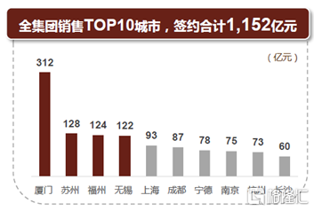 選取建發國際佈局的核心城市看,2021年,建發國際銷售TOP10城市總額合計1,152億元,佔整體銷售金額比例達到69.8%;同時,公司於廈門、蘇州、無錫及福州單城市銷售金額破100億元,進一步反映了核心城市潛在的消費升級以及需求改善的潛力。