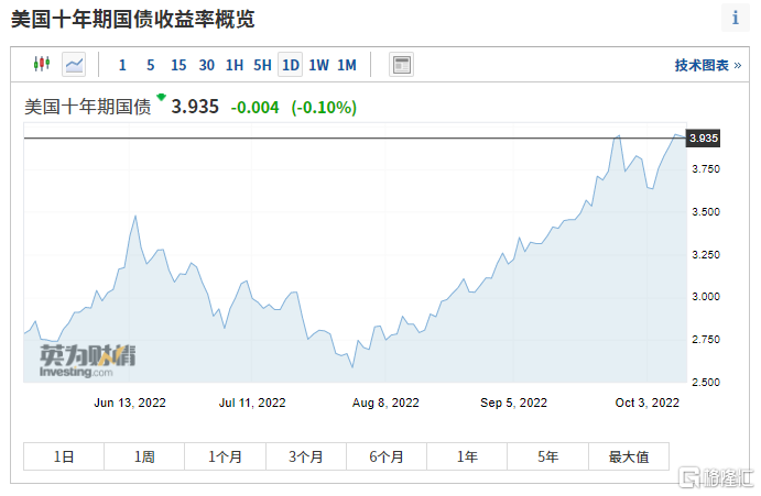昨日,美國2年期國債收益率盤中升至4.35%,爲2007年8月以來新高;10年期美債收益率一度上破4%關口;30年期長債收益率一度上逼4%,創2013年來的九年最高。