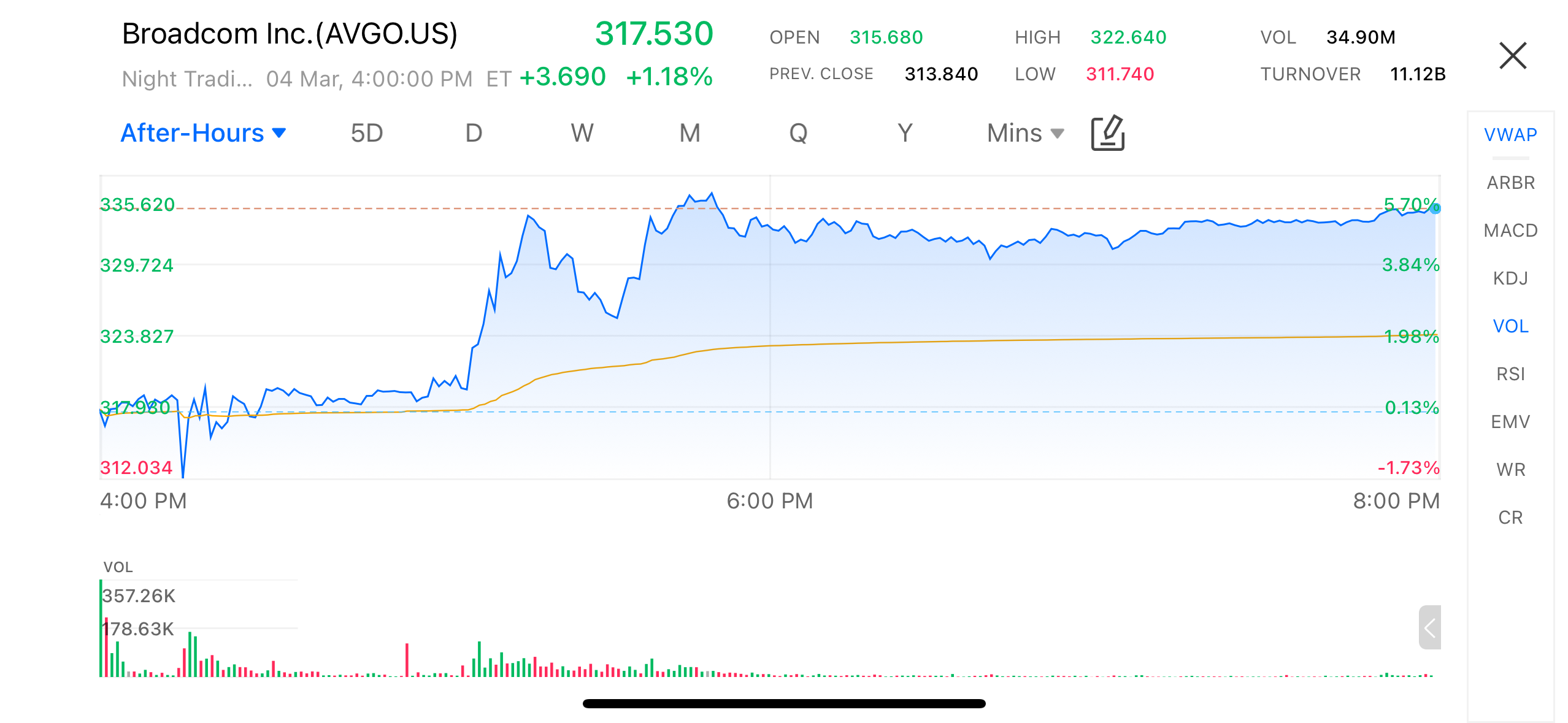After hours in the U.S. stock market, Broadcom (AVGO.US) saw a significant rise, with shares increasing by nearly 6% after the earnings report was released. As of the close, the stock was priced at $317.53, up 3.69% from the previous close. The company's Q1 FY2026 performance, driven by its AI business, set new historical highs, and the strong earnings and guidance have further boosted market confidence.