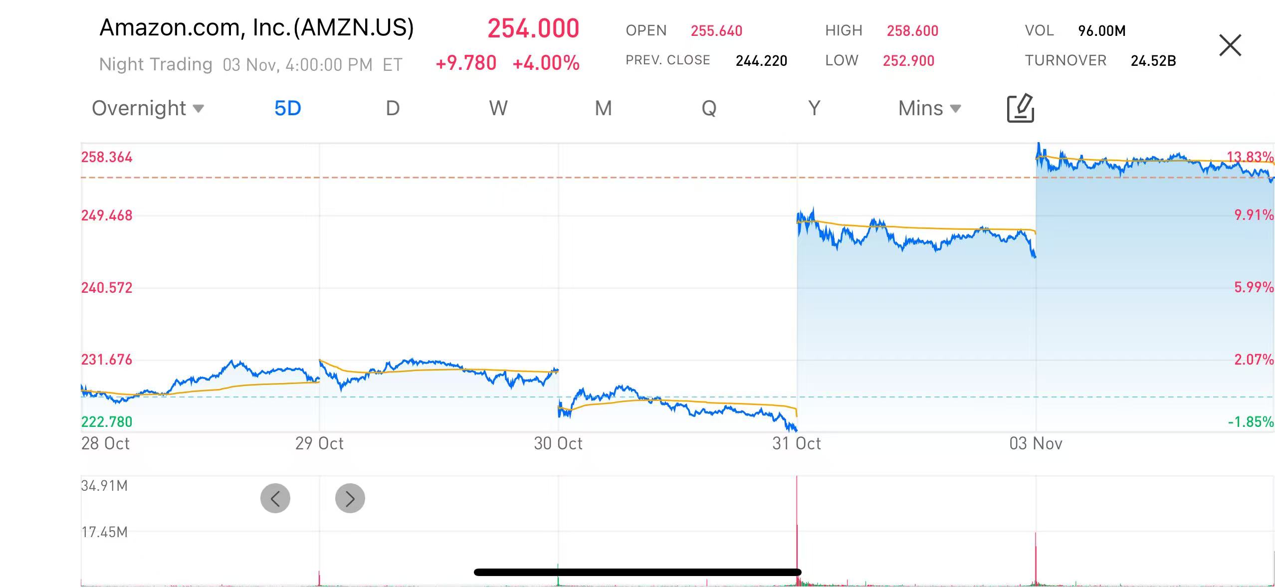 Amazon.com, Inc. (AMZN.US), the U.S. e-commerce and cloud computing giant, released its financial results for the third quarter (Q3) of fiscal year 2025, ending September 30, on October 30. Following the earnings announcement, the stock surged approximately 9% on October 31 and rose another 4% on November 3, marking a cumulative increase of around 13%.