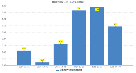 再看现金流,2019年上半年经营活动现金流净额为1.1亿港元,少少低于净利润的1.47亿港元。但纵观过往几年,该数据与净利润基本吻合,说明盈利质量不差。