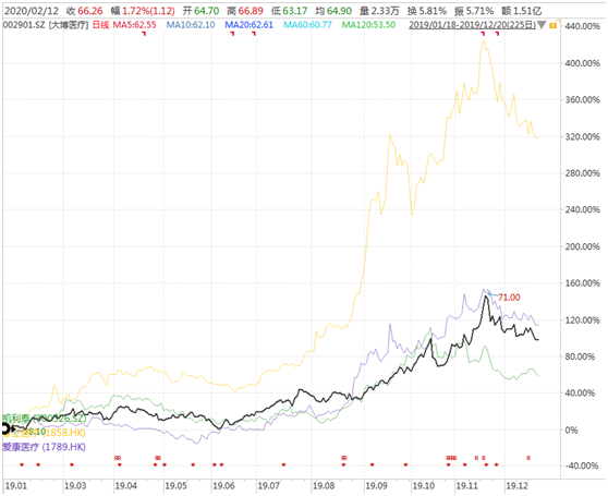 其实,不仅仅是爱康医疗,在A股上市的大博医疗(骨科创伤龙头)、凯利泰(脊柱持续补充产品线,微创为特色)、春立医疗(关节龙头,产品往高端发展)均表现强势。从2019年统计至今,这4家骨科企业分别上涨208.2%、127.6%、107.2%、593.5%。