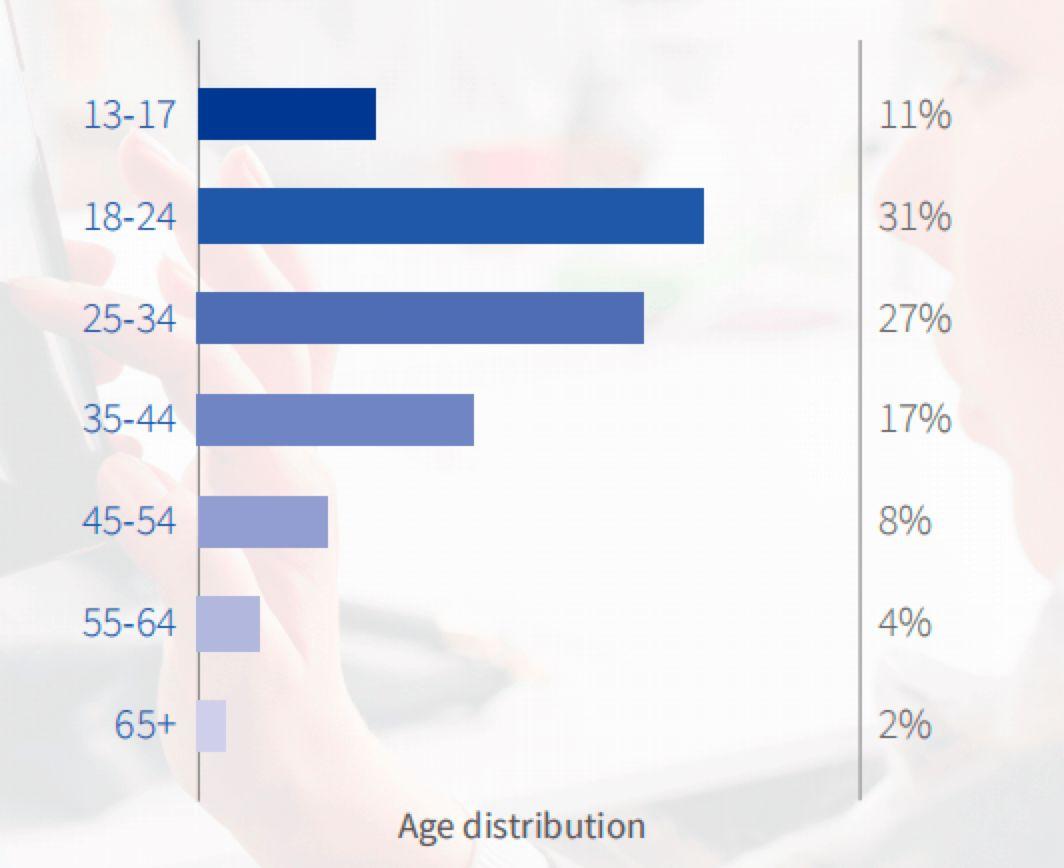 在巴西游戏市场中,玩家趋于年轻化,86%的玩家年龄在13-45之间,平均年龄为30岁,44岁后的年龄组玩家人数呈断崖式下降。而18-24(95后)年龄组成为用户人数最多玩家年龄组。放眼于全球,95后年轻用户也正在受到游戏发行商的重视。
