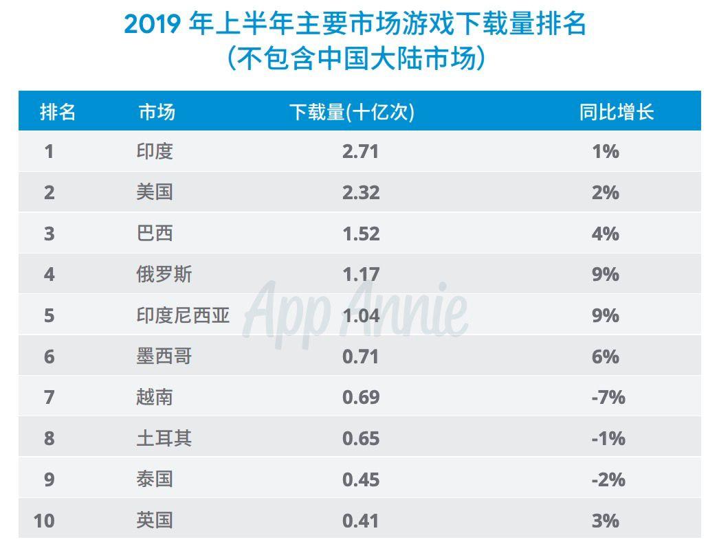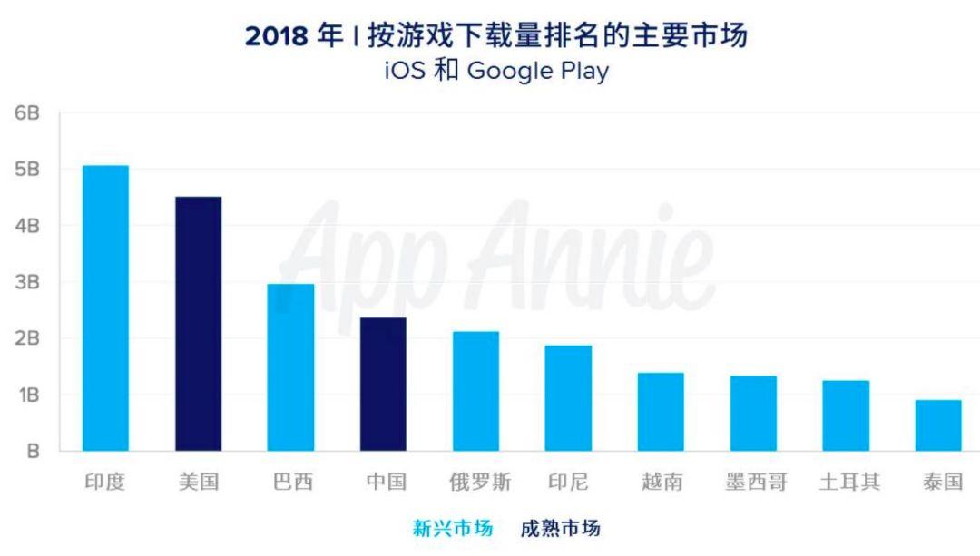 • 在游戏下载量方面,印度、巴西、俄罗斯和印尼成为新兴市场的领军者。