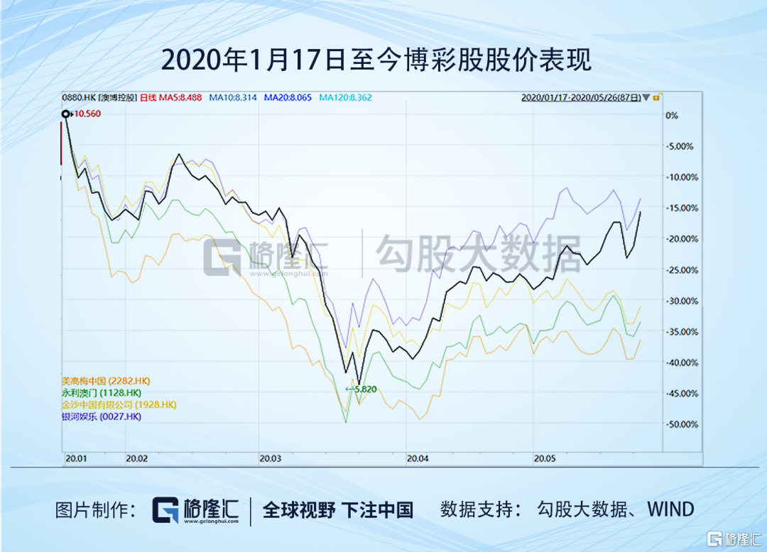 自1月20日,中国疫情升级以来,博彩股跌得非猛,基本最深的跌幅都有40个点以上。