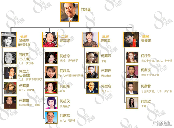 讲这个之前,先看赌王的家族,赌王一生有四房太太,17个子女,如何安排家产分配绝对是令赌王最头疼的一件事。