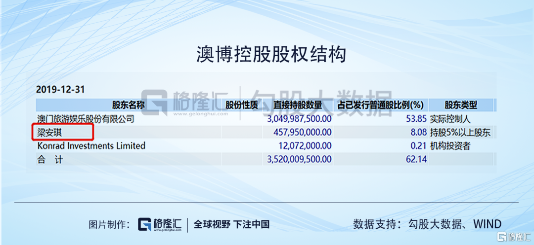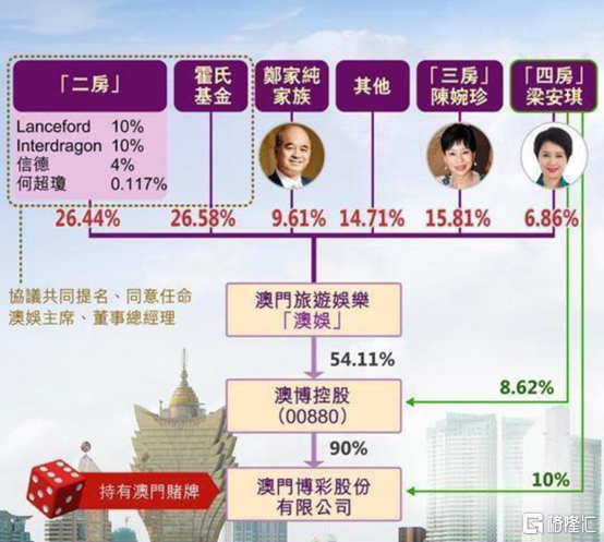 澳博控股,看股权结构,澳娱是大股东,占了53.85%,然后四房的梁安琪单独拿了8.08%,敢情澳博控股给了四房?