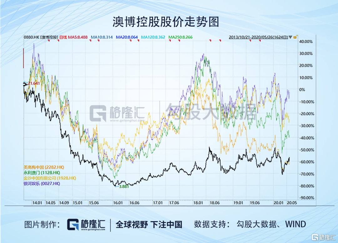 这些复杂微妙的关系,有没有牵制澳博的发展,非内部人士,不得而知,但很明显的,澳博这几年的发展不如其它博彩公司,股价表现上毫无大哥风采。