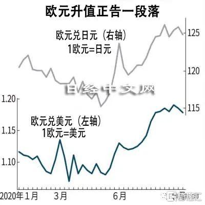 欧元不断升值的原因是美元存在贬值压力。预计美国联邦储备委员会(FRB,简称美联储)的零利率政策将长期持续,在这样的形势下,因息差缩小,投资者开始抛售美元。另一方面,欧洲国家就设立7500亿欧元的新冠疫情复苏基金达成协议。市场对欧洲比美国更早恢复经济活动的期待也成了欧元升值的利好因素。
