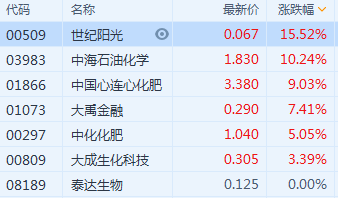 港股异动 | 化肥板块大涨 中海石油化学(3983.HK)涨超10%