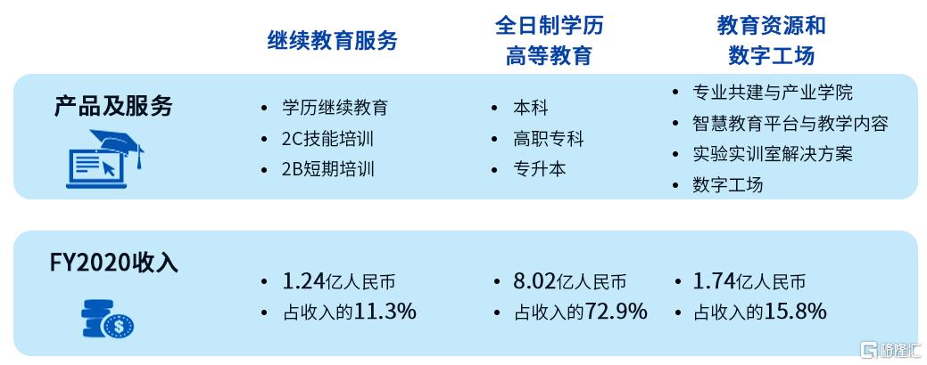 同时,受益于政府出资补贴职业技能培训、持续大规模开展职业教育等政策利好,继续教育服务2020年克服疫情影响,实现营业收入1.24亿元,同比增长63.2%。