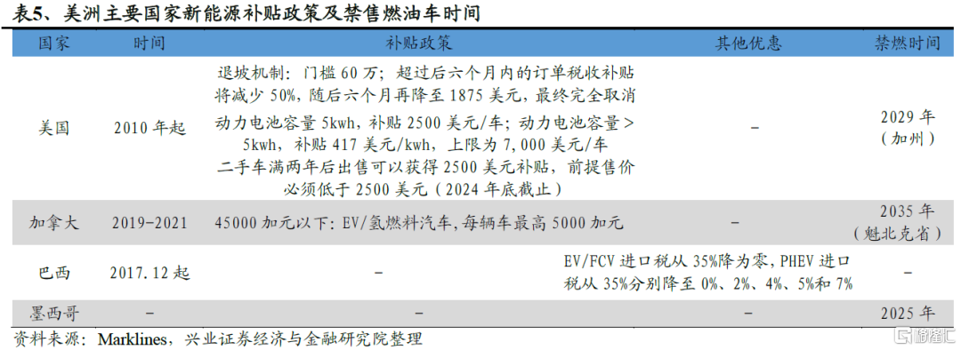 美国:对购买新能源车的纳税人进行补贴,对累计销量60万以上新能源车企给予阶梯型退坡补贴。美国纳税人新购置的符合条件的插电式混合动力汽车及纯电动汽车,可享受税收返还方式的补贴。2019年底美国联邦政府颁布《2019年可再生能源增加和能效法案》,调整了电动车补贴政策,现行补贴政策主要方式为:1、车辆动力电池容量5kwh 补贴2,500美元/车,大于5kwh 的部分,补贴417 美元/kwh,上限为7,000 美元/车(纯电动车型基本均能达到上限补贴要求);2、当车企的新能源车累计销量突破60 万辆后,将触发补贴退坡机制:在达到60 万辆之后接下来的第一、二个季度补贴减半,第三、四个季度再减半,之后将不再享受任何补贴;