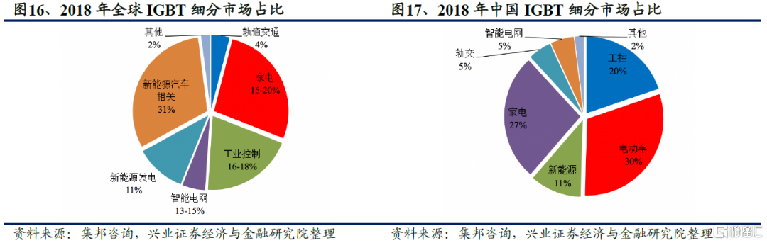IGBT是电力电子重要器件,在我国,按照应用领域划分,新能源汽车是IGBT应用最大的领域,占比为30%。其他重要领域中,家电占比27%,工业领域占比20%。相对于工业IGBT模块,电动车对IGBT的耐高温、电气可靠性、强振动下稳定性等指标更为看重,在车辆启停、电机散热、芯片抗震、功率密度等诸多方面提出了技术难点。