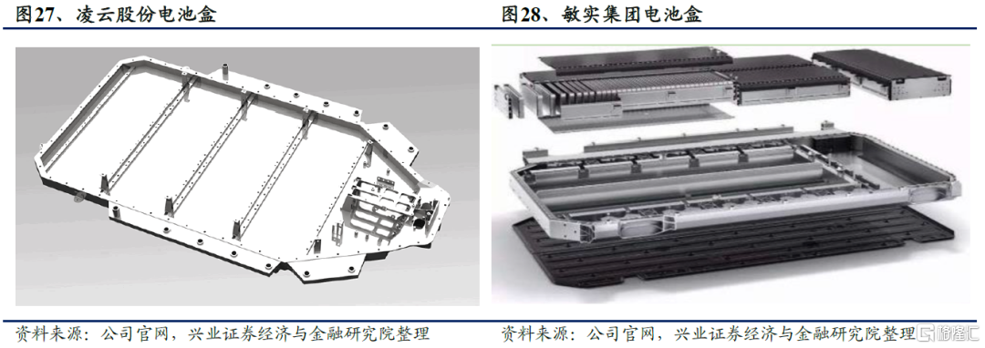先行布局的零部件厂商有望掌握先发优势。铝电池盒目前主要的供应商有凌云股份、敏实集团和华域汽车等。技术路线上分为铝挤出和铝压铸两派,前者以敏实集团为代表,其他厂商大多以铝压铸为主要路线。铝电池盒是安全件,生产工艺要求严苛,硬件投入强度大,其前序工艺和其他铝产品相同,后序工艺焊接挑战难度较大,对表面清洁度和密封要求非常高。布局铝产品线早,在铝熔铸、挤出、加工等相关工艺上有成熟经验,并获得了客户的认可的零部件厂商有望受益。