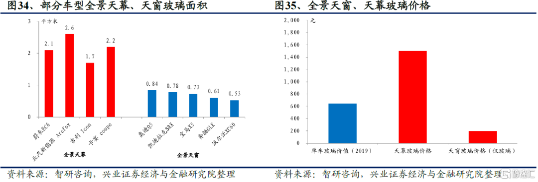 全景天窗加速渗透+汽玻产品升级,带动汽车玻璃单车面积及价值量提升