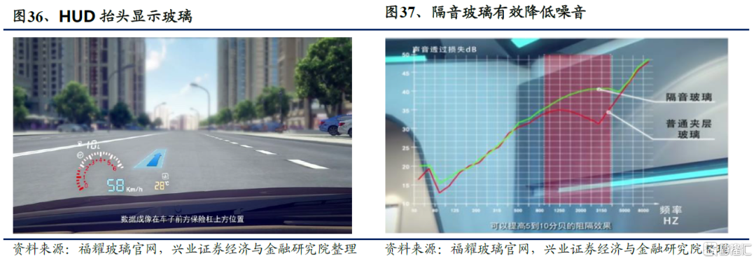 汽车玻璃在安全舒适、智能控制、美观时尚方面全面升级,单车价值量提升空间巨大。智能汽车玻璃具有显著车辆运行状态、自动调光、保持车内环境温度、提高燃油效率等特点。安全舒适方面,憎水玻璃、隔音玻璃、隔热玻璃等相继推出;智能控制方面,HUD抬头显示玻璃可以显示车辆运行信息,AR-HUD在其基础上可以输出图片信息并实现辅助驾驶;美观时尚方面,汽车玻璃氛围灯等设计深得人心。未来,随着玻璃制造技术的升级,将推动中国汽车玻璃行业向智能化方向发展,高附加值汽车玻璃价值量有望进一步获得大幅提升。
