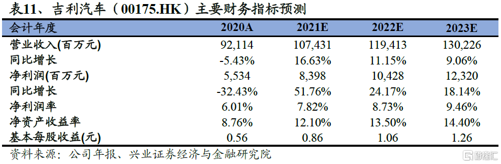 我们的观点:吉利4.0造车时代产品竞争力、盈利能力、性价比有望得到显著提升。与沃尔沃的合作将会继续发挥双方协同效应,助力公司技术提升及海外市场开拓。此外,此外,与沃尔沃的合作落地及电动车新品牌极氪逐步放量有助于公司估值提升。我们预测2021-2023年公司收入分别为1074.31、1194.13、1302.26亿元,归母净利润分别为83.98、104.28和123.20亿元,目标价25.6港元,对应25倍2021年PE,维持“买入”评级。
