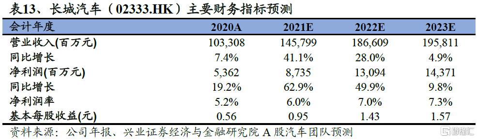 我们的观点:乘用车行业复苏向上,长城新车周期强劲,新平台渗透率快速提升,业绩弹性大,维持“审慎增持”评级。乘用车行业复苏确定性高,公司主销市场10-15万SUV市占率维持稳定。公司于20H2基于全新整车平台开启强劲车型周期。考虑公司21年新车数量有望超预期,预计公司20-22年归母净利为51.1/85.1/117.9亿元,维持“审慎增持”评级。