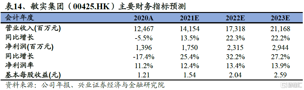我们的观点:敏实集团具备全球布局及管理能力的汽车零部件公司,拥有稳定且庞大的客户群,成功进入国际一流主机厂供应体系。公司电池盒业务快速推进,新产品订单持续增长,为未来业绩持续增长提供强有力的支撑。我们预计公司2021-2023年收入分别为141.54亿元、173.18亿元、211.68亿元,归母净利润分别为17.50亿元,23.15亿元,29.44亿元,分别同比增长25.4%、32.2%、27.2%。我们给予公司2021年25倍PE,相当于目标价46.02港元,调升至“买入”评级。