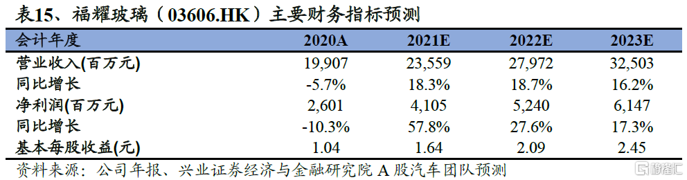 公司作为全球汽车玻璃龙头供应商有望受益行业规模增长的红利。公司为宾利、奔驰、宝马、奥迪、通用、丰田、大众、福特、日产、本田等世界知名品牌以及中国各汽车厂商提供全球OEM配套服务,产品在中国市场市占率超过65%,美国市场市占率超过25%。作为行业龙头,公司技术实力领先、产能布局充足,有望受益行业规模增长的红利。