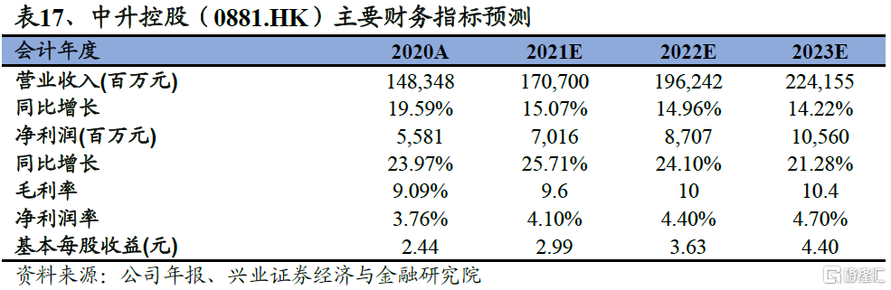 我们的观点:长远来看,我国豪华车渗透率还有较大的提升空间,售后及增值业务利润占比提高也将为经销商业绩稳定性提供保障。公司作为豪华车经销商行业龙头,具有稳健的产品组合和优秀的经营管理能力。我们预计公司2021-2023年利润分别为70.16亿元、87.07亿元、105.60亿元,分别同比增长26.7%、24.1%、21.3%,给予公司目标价67.88港元,相当于19倍2021年PE,维持“审慎增持”评级。