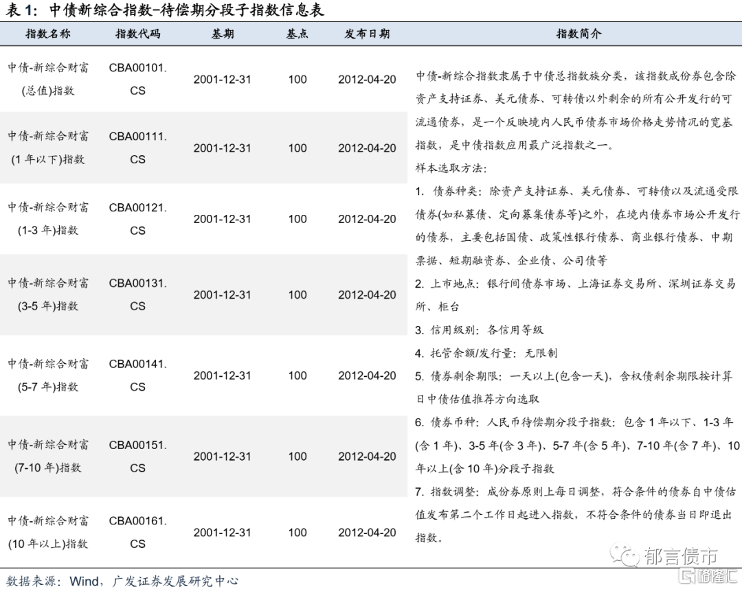 中债新综合指数包含7个待偿期分段子指数:1年以下、1-3年(含1年)、3-5年(含3年)、5-7年(含5年)、7-10年(含7年)、10年以上(含10年)分段子指数。选取中债新综合待偿期分段子(财富)指数的涨跌幅,作为主要回归解释变量。