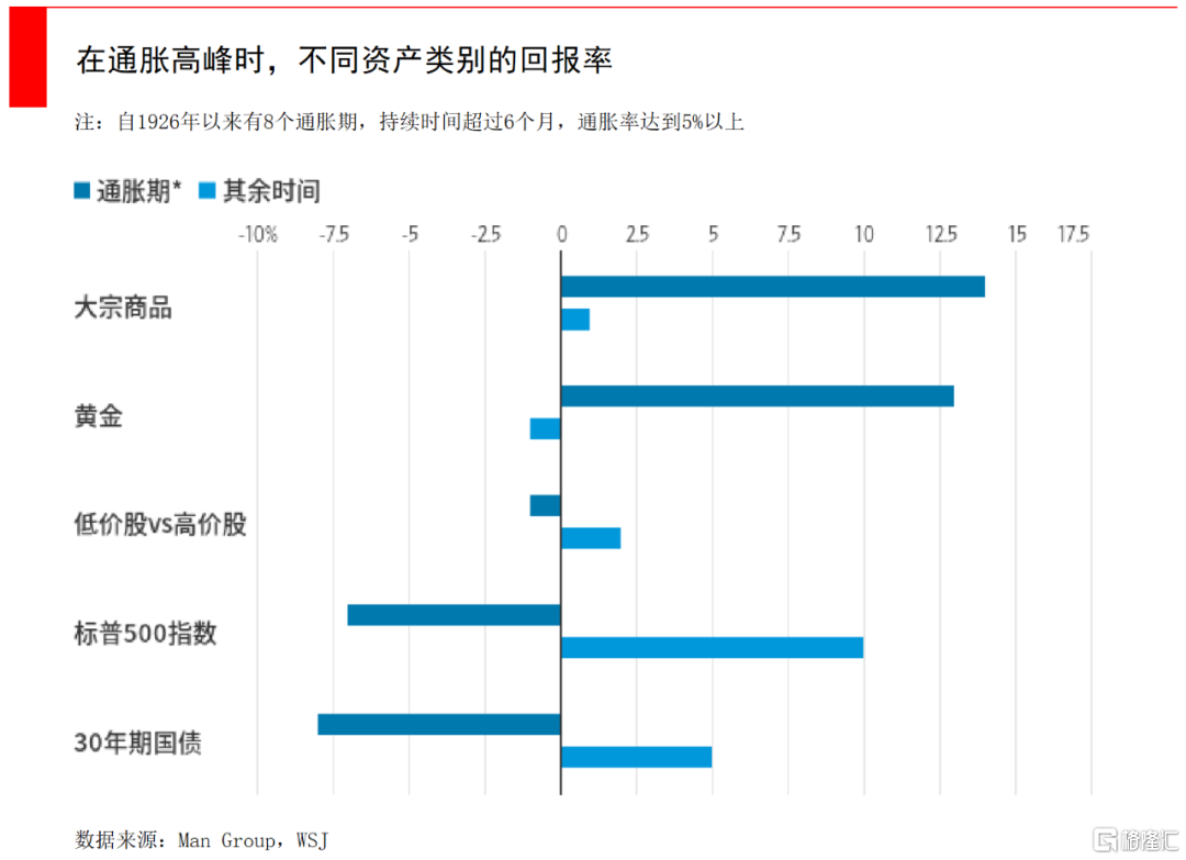 2、大宗商品。通货膨胀就是商品价格上涨,而大宗商品往往涨幅最大,因为需要很长时间才能建立新的产能来满足需求。就像今年以来铜、石油价格上涨了30%,木材价格翻倍。但普通人不可能拥有仓库或是油轮来储存这些商品,那就需要购买期货合约。但危险在于期货合约的长期回报,主要取决于各期货价格之间的差异,而不是标的商品本身,要想从中赚钱需要专业人士。