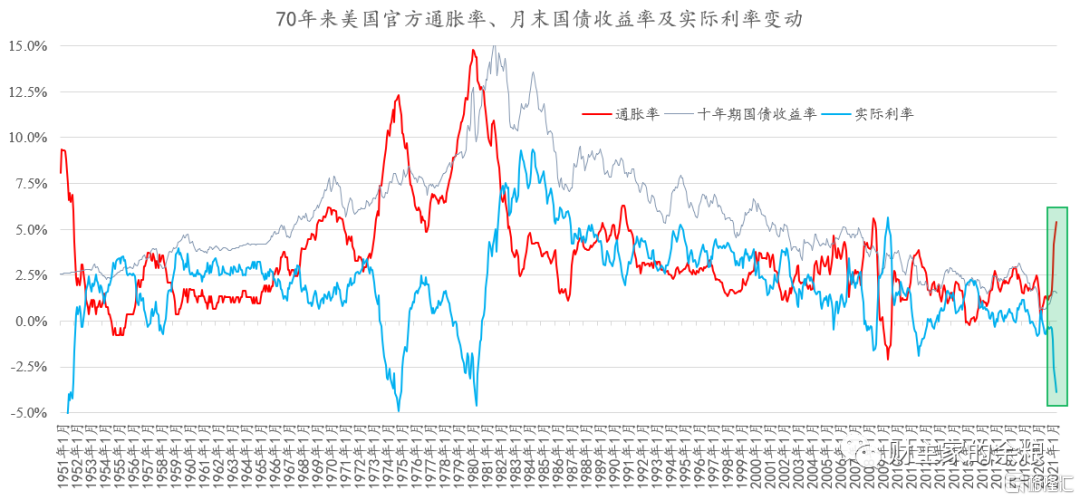 从通胀率和国债收益率的变动上看,1973年所开始的深度实际负利率,其产生原因与当前非常类似:通胀抬升+国债收益率下降。