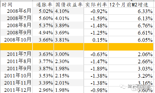 从通胀程度看,当前更类似于2008年年中;从国债收益率下降深度看,当前更类似于2011年年中。但如果考虑到这两个阶段此前12-24个月的广义货币增速,可以说,这两个阶段的深度实际负利率,和当前的深度实际负利率,没什么相似之处。
