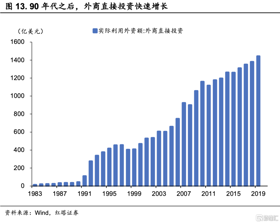等到了90年代初期时,处于市场经济转型与对外开放时期的中国,凭借着绝对的人口红利及丰富的自然资源,将制造业承接了过来。