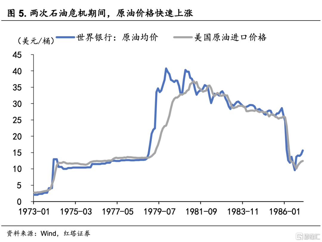 同时,1973年中东战争的爆发和1978年底伊朗国内政治动荡,也分别引发了两次全球性的石油危机,世界原油价格在1979年底达到了40美元/桶的历史高点,相比于1973年初翻了近20倍。