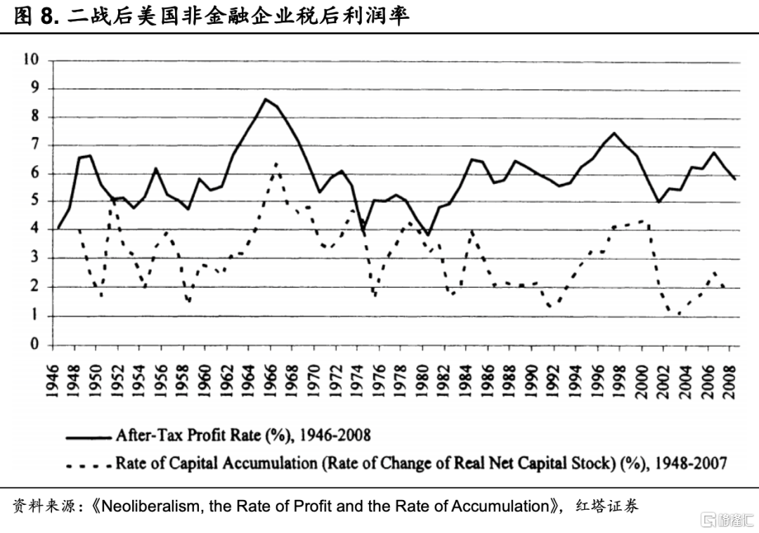 企业利润严重缩水,根据Bakir和Campbell(2010)[3]的统计,美国非金融企业税后利润率在1975年、1981年甚至降到了4%以下。