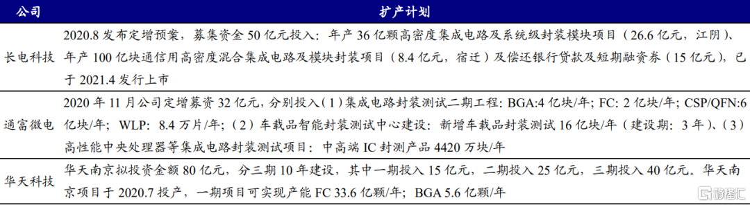 晶圆厂产能扩张+国产替代,预计未来封测高需求仍将维持: